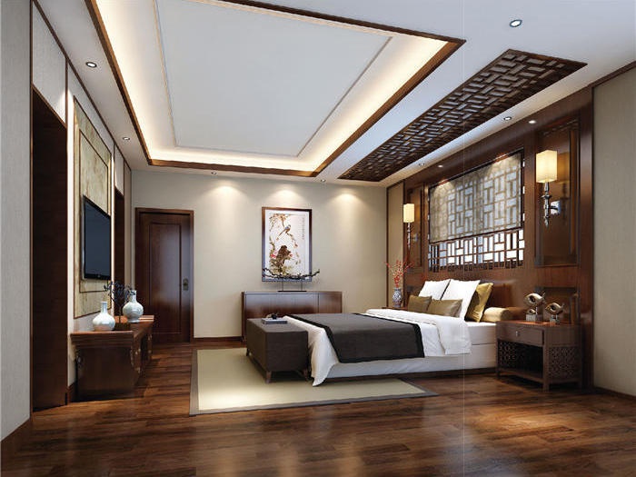 中式装修的墙、地面与普通装修没什么区别。墙面用白色乳胶漆或浅色壁纸都可以。地面要用木地板石材、地砖、地毯均可。中式装饰材料以木质为主。讲究刻彩绘、造型典雅。多采用酸枝木或大叶紫檀等高品质硬木,经过工艺大师的精细刻,每件作品都有一段精彩的故事。而每件作品都能令人对过去产生怀念,对末来产生美好的向往。色彩以深色沉稳为主。因中式家具色彩一般比较深,这样整个居室色彩才能协调。再配以红色或黄色的靠垫、坐垫就可烘托居室的氛围,这样也可以更好的表现古典家具的内涵。空间上讲究层次,多用隔窗、屏风来分割。用实木做出结实的框架,以固定支架,中间用模子雕花,做成古朴的图案。