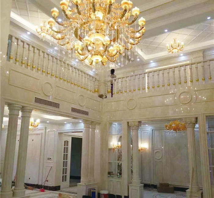 采用大量大理石、罗马柱从简单到繁杂、从整体到局部,精雕细琢,墙面大理石都给人一丝不苟的印象。一方面保留了材质、色彩的大致风格,仍然可以很强烈地感受传统的历史痕迹与浑厚的文化底藴,同时又挪弃了过于复杂的肌理和装饰,简化了线条。